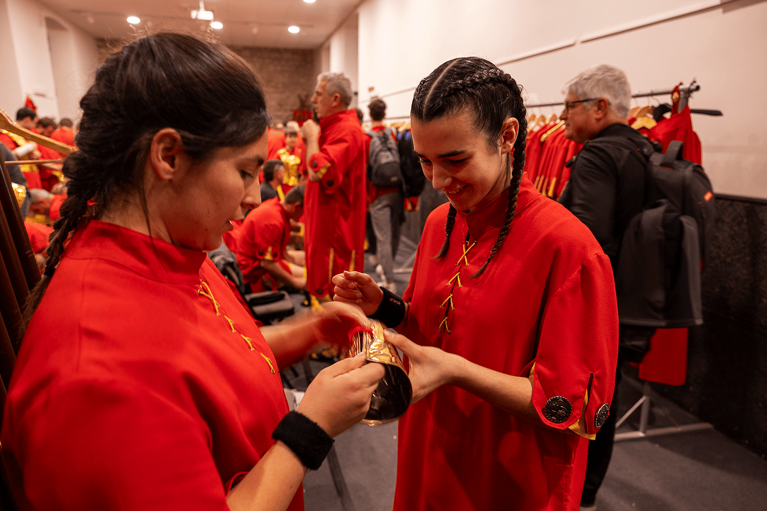 At the mentioned time they go out in formation and carry out a parade through different streets, also performing the figures called sardanas, crosses and others, in a row of 2 or 4 depending on the streets they pass through and if they go in a long step - which is used for the parade and exhibitions - or a shorter one - processional-.