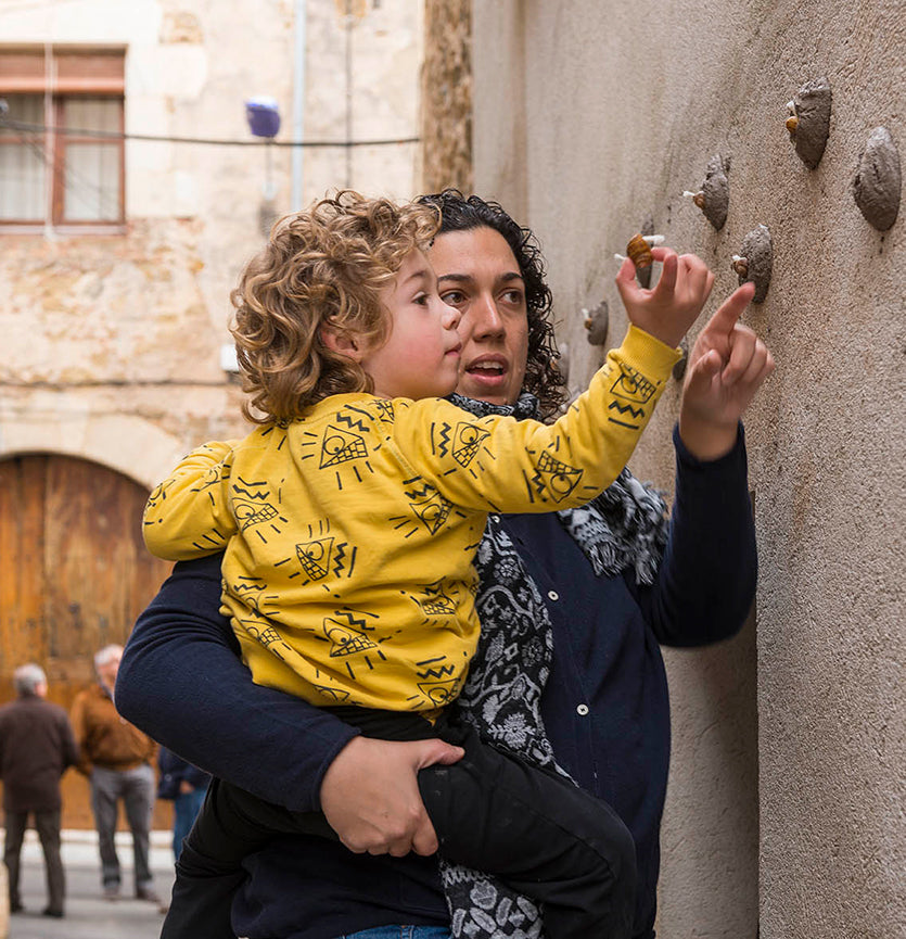 Durante la mañana de Jueves Santo, la calle Oriente y la calle Migdia se transforman en la Calle dels Cargols. Estas callejuelas largas y estrechas experimentan un movimiento inusual: los vecinos salen y preparan las luminarias efímeras que por la noche se encenderán al paso de la procesión y se engancha a la tarde. se llenan con un aceite que la tradición marca que debe ser lo que ha sobrado de hacer los bruñuelos.