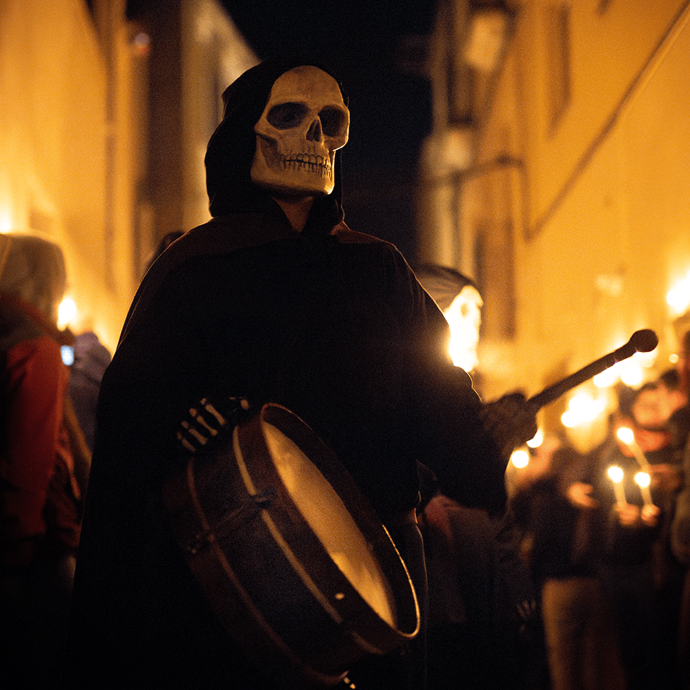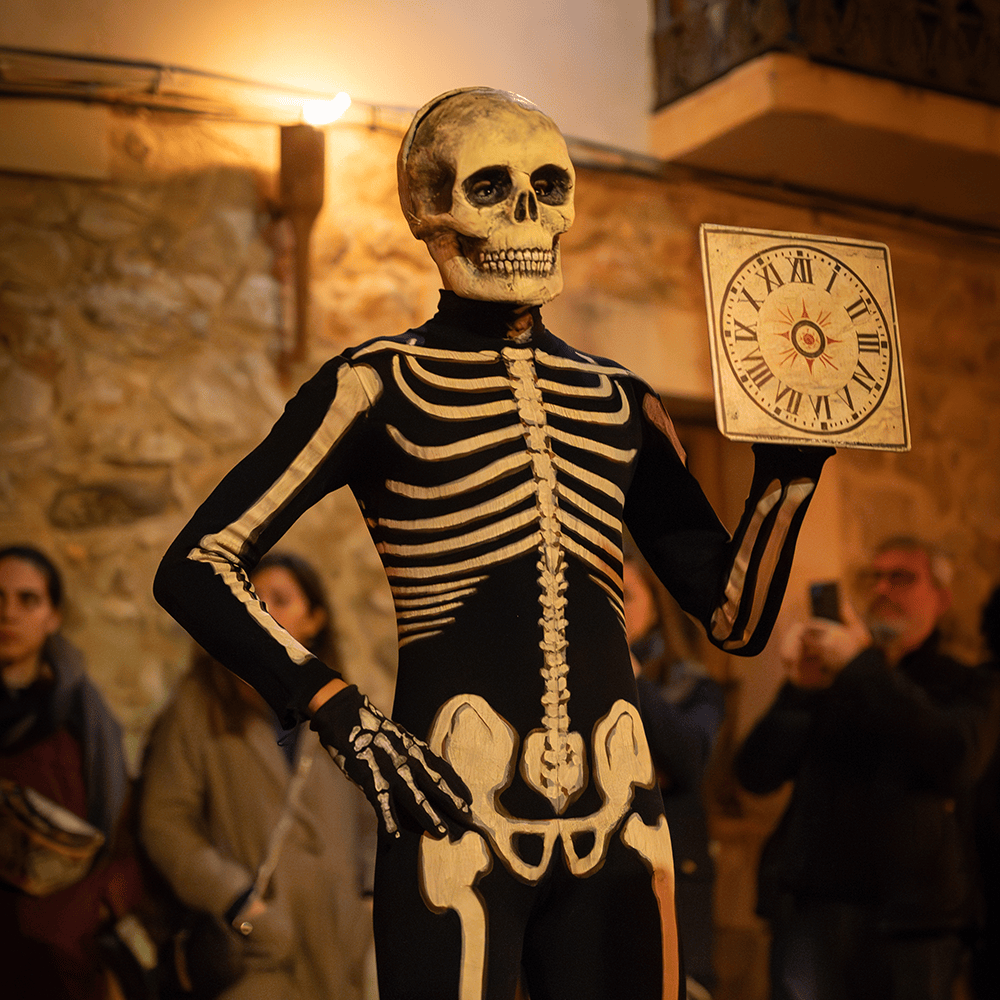 Se trata de un verdadero tesoro, una joya única de la cultura popular que, si bien nos ha llegado en una configuración que es claramente deudora de la estética y la iconografía barrocas, hunde sus raíces primeras en los siglos medievales cuando, sobre todo a partir de la Peste Negra (1347-48), la temática de la muerte tomó la música como la protagonista. En la Danza de la Muerte de Verges perviven, pues, unos elementos antropológicos, simbólicos e históricos que, de hecho, forman parte del bagaje cultural de toda Europa.
