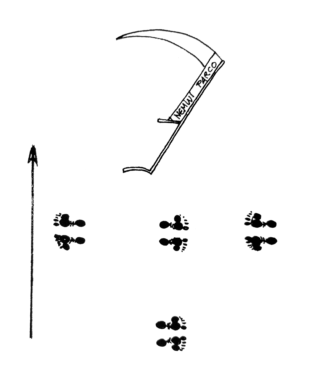 Es símbolo del final de la vida y representa la universalidad de la muerte: nadie puede escapar de su corte. - Lleva grabada la frase latino "Nemini Parco" : "No perdono nadie" , remarcando la implacabilidad de la muerte.