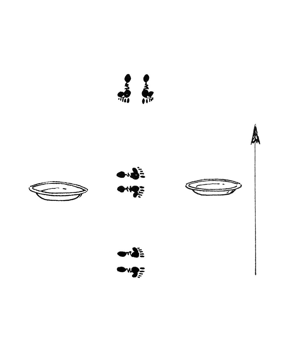 Los Platillos son los pequeños danzantes que ocupan las posiciones laterales de la Danza. Son gemelos en el cuadro, tanto en edad como en símbolo. Cada uno lleva un plato lleno de cenizas, que simula el polvo al que inevitablemente nos convertimos.