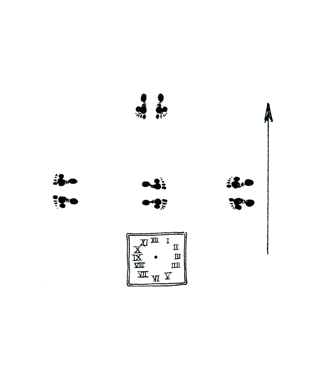 - Un reloj cuadrado, que no indica ninguna hora, símbolo de la incertidumbre del momento final.