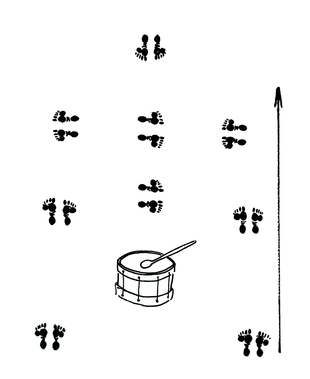 - Caminata lenta y acompasada, siguiendo el tamborilero.