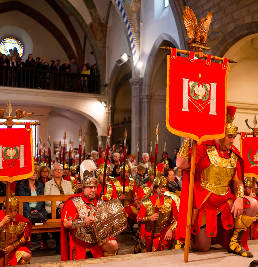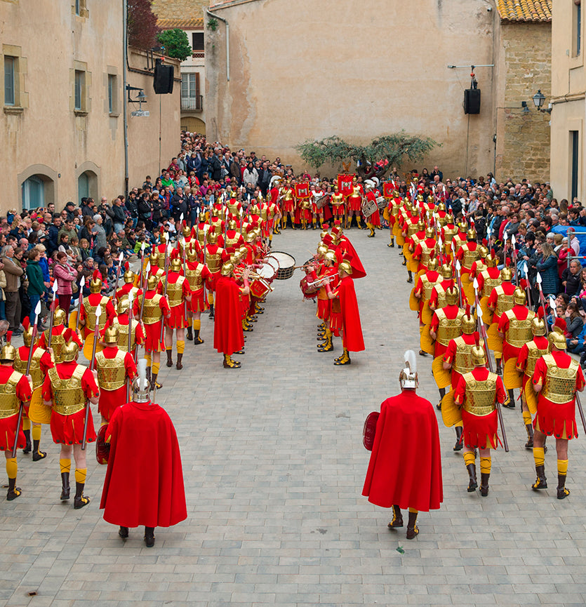 Vers 17 heures a lieu le départ des Manages. Le cortège, composé d'environ quatre-vingts membres, se met en route en formation et effectue, au rythme strident des timbales et des trompettes, un défilé à travers différentes rues de la ville, en partant de la Placeta de l'1 d'Octuber, où se déroule le spectacle le plus spectaculaire. Là, les soldats romains exécutent une série d'évolutions colorées : les soi-disant « sardanes », des croisements et d'autres figures d'une grande beauté plastique et d'une grande harmonie.